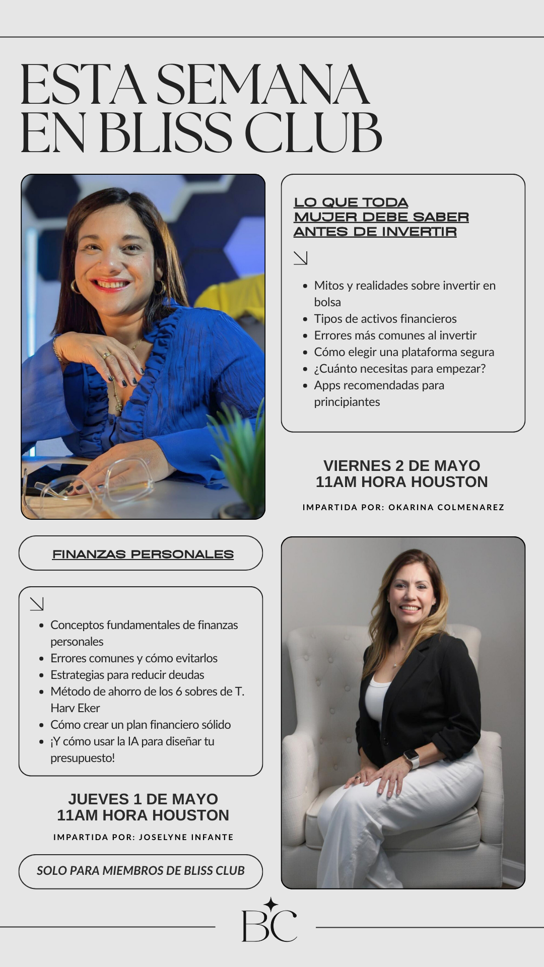 Te invitamos a dos clases especiales EN VIVO, totalmente diseñadas para mujeres como tú, que desean transformar su relación con el dinero:
